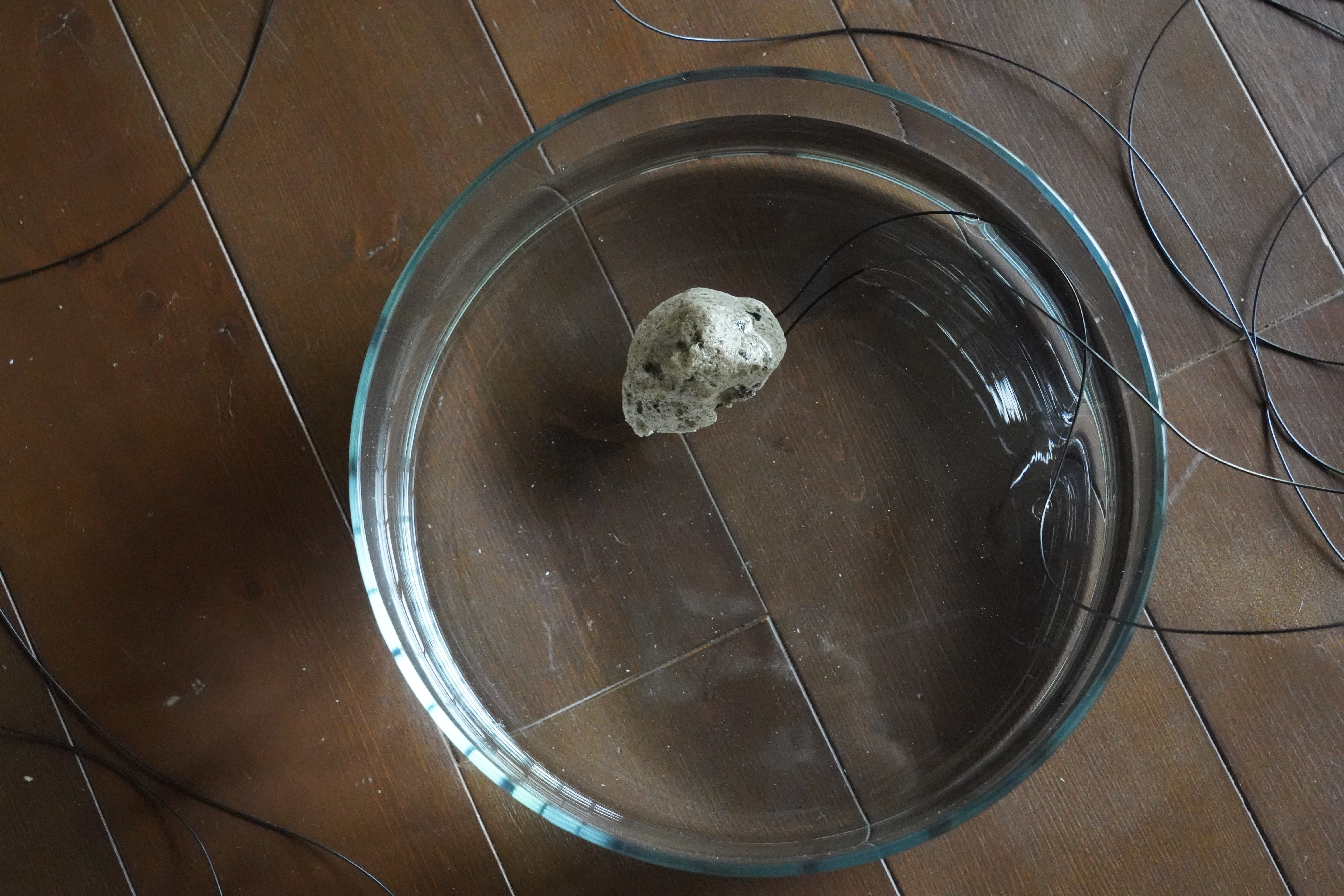 stones, pumice from Japanese submarine volcano Fukutoku-Okanoba’s eruption, sound, event score, speakers, electronics, glass, mirror, paper, thread, body, wind
